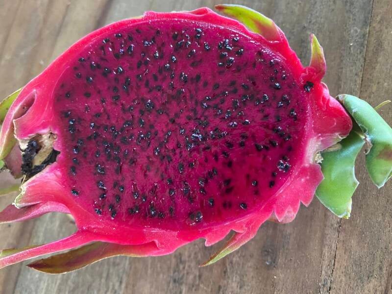 Walt's lifelong friend, Charlie stopped by (September 2024) and they tasted the RED DRAGON FRUIT and said it was good and were very impressed with the benefits. It is the most popular at Walt's Farm Stand due to it's sweeter taste and benefits. It is a great source of iron!! One of the ladies that came to our stand told us that her Doctor give her the option to eat one Red Dragon Fruit a day or take the medication. She opted for the dragon fruit and within a week her iron levels were normal.